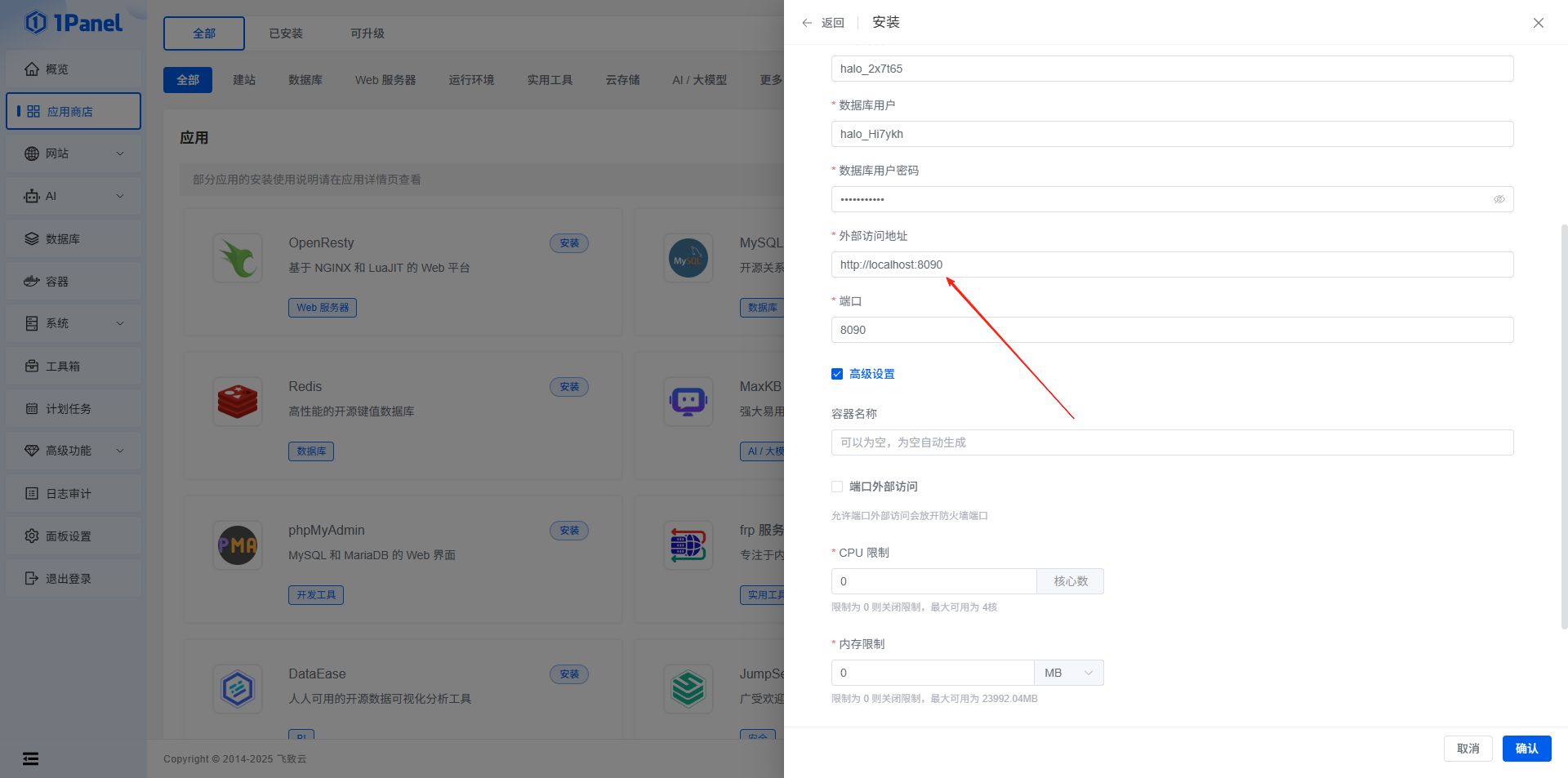我这里使用1Panel商店内置进行搭建,使用官方镜像,docker现已被墙,如若无法访问请尝试更换镜像源。